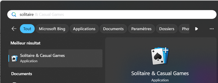 Tapez le mot « solitaire » et lancez l’application « Solitaire & Casual Games »